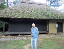 桜の木が大きくなり草葺の屋根の上にかぶさっている。