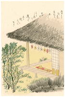 庵の軒先に吊るした七夕の人形飾りの真澄の絵に当時の生活風情が伝わってくる。
