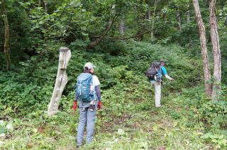 これから涼しくなり歩く人も増えると思う。登山口の道標は積雪に押され、去年よりも傾向きが目立つ。