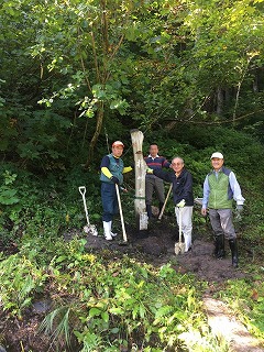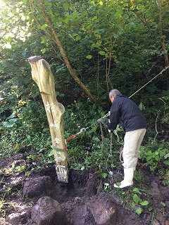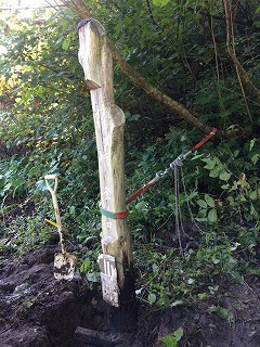 9月2日の整備の折に登山口にある標柱が傾いていると言うことで、このままだと今冬にでも倒壊の恐れありとして急遽修繕することとした